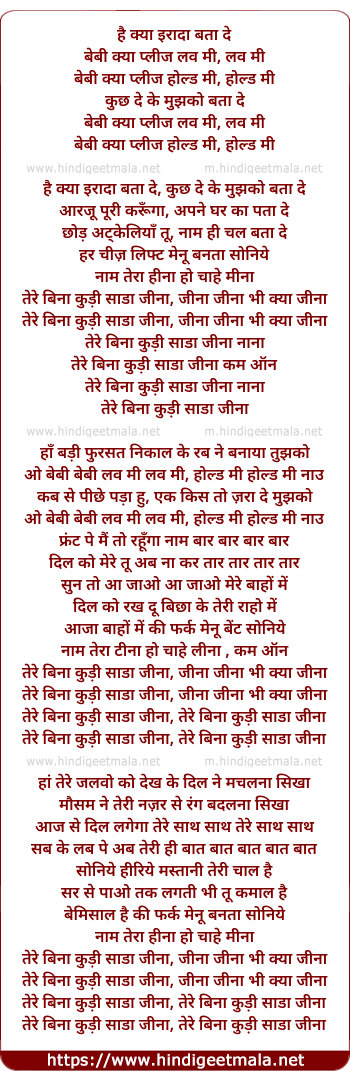 Lyrics of Tere Bina Kudi Saada Jeena - तेरे बिना कुड़ी साडा जीना
