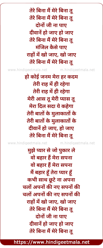 Lyrics of Tere Bina Mai - तेरे बिना मैं
