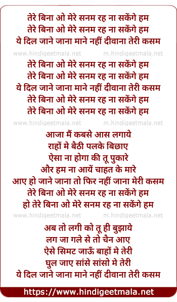 Lyrics of Tere Bina O Mere Sanam - तेरे बिना ओ मेरे सनम