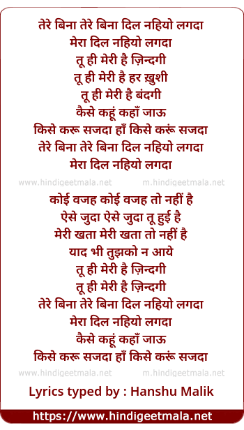 Lyrics of Tere Bina - Sad - तेरे बिना