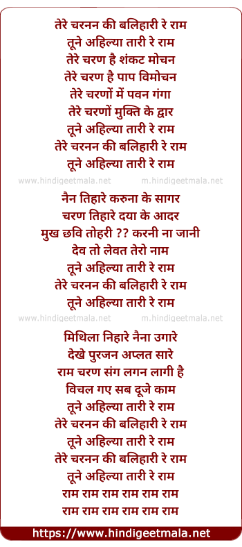 Lyrics of Tere Charnan Ki Balihari Re Raam - तेरे चरनन की बलिहारी रे राम