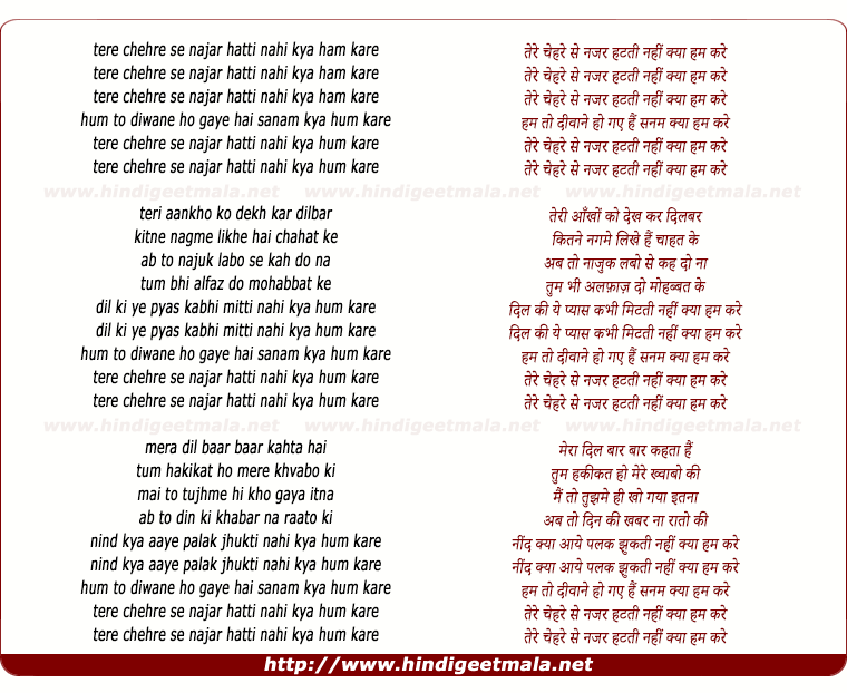 tere chehre se najar hatti nahi kya hum kare