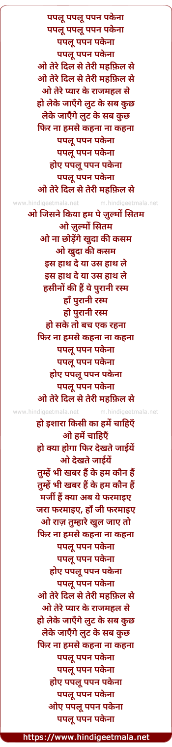 Lyrics of Tere Dil Se Teri Mehfil Se - तेरे दिल से तेरी महफ़िल से