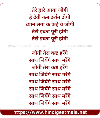 Lyrics of Tere Dware Aayaa Jogi - तेरे द्वारे आया जोगी