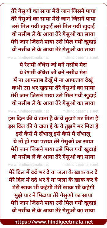 Lyrics of Tere Gesuo Ka Saaya - तेरे गेसुओ का साया