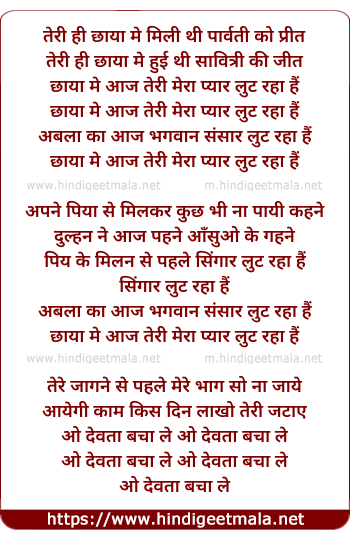 Lyrics of Tere Hi Chhaya Me Hui Thi Savitri Ki Jeet, Chhaya Mein Aaj Teri - तेरी ही छाया मे हुई थी सावित्री की जीत, छाया मे आज तेरी