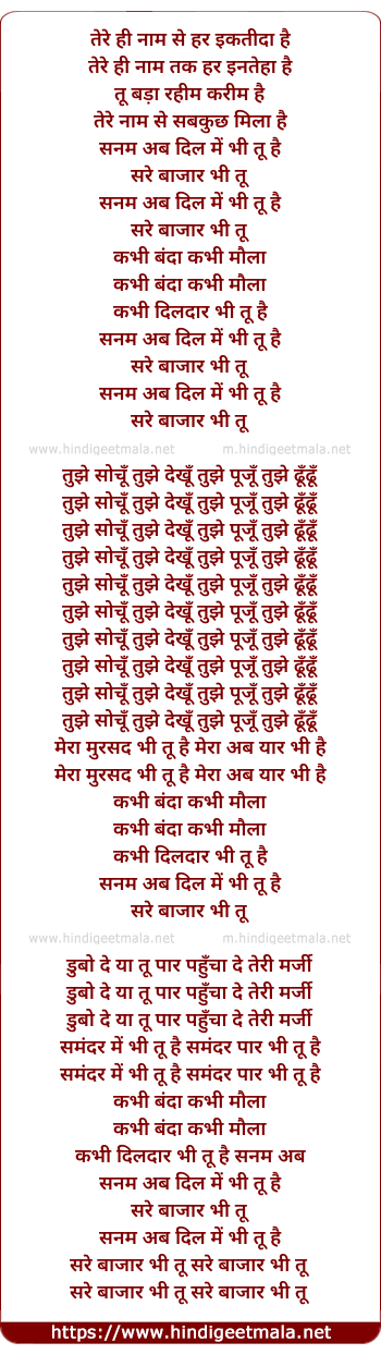 Lyrics of Tere Hi Nam Se (Sanam) - तेरे ही नाम से