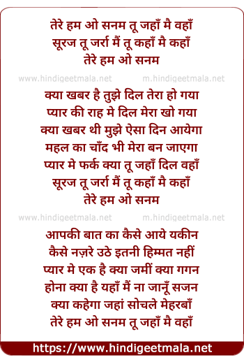 Lyrics of Tere Hum O Sanam - तेरे हम ओ सनम