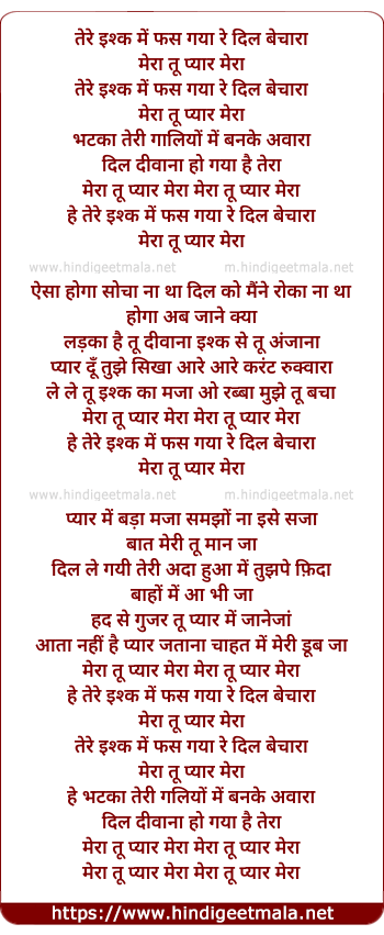 Lyrics of Tere Ishq Me Phas Gaya - तेरे इश्क में फस गया