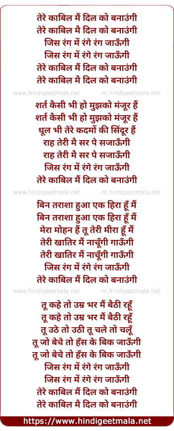 Lyrics of Tere Kaabil Me Dil Ko Banaugi - तेरे काबिल मैं दिल को बनाउंगी