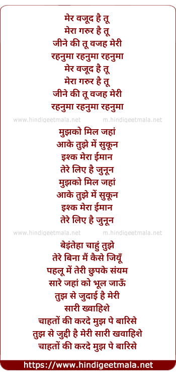 Lyrics of Tere Liye Hai Junoon - तेरे लिए है जूनून