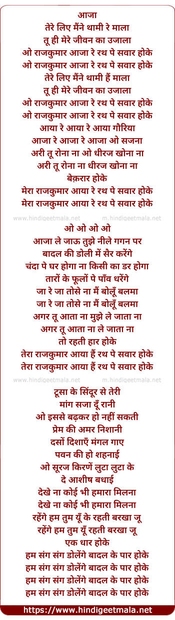 Poetic Translation - Lyrics of Tere Liye Maine Thami Re Mala - आजा