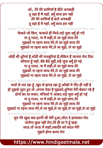 Lyrics of Tere Mere Darmiyaan Hain (Le Ja Mujhe) - तेरे मेरे दरमियाँ हैं ( ले जा मुझे)