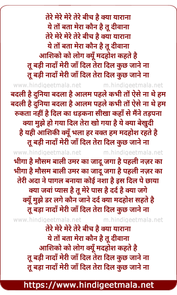 Lyrics of Tere Mere Mere Tere Bich Hai Kya - तेरे मेरे मेरे तेरे बीच है क्या