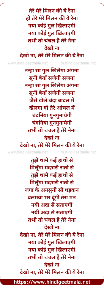 Lyrics of Tere Mere Milan Ki Ye Rainaa - तेरे मेरे मिलन की ये रैना