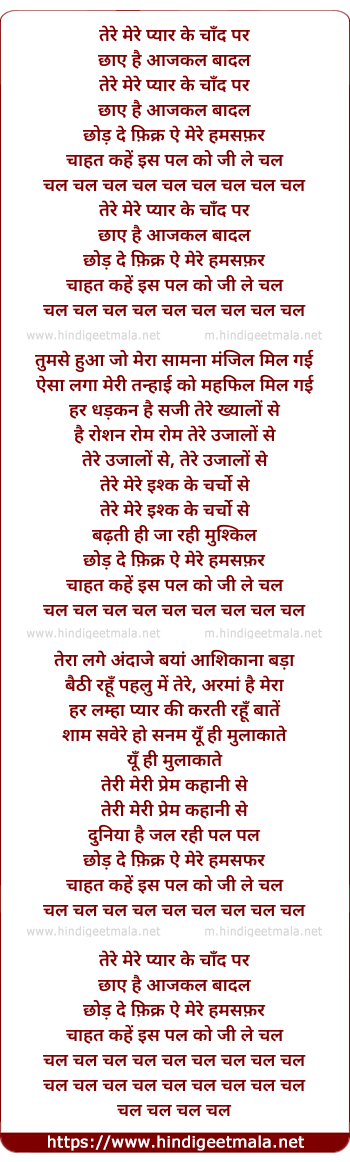 Lyrics of Tere Mere Pyaar Ke Chaand Par - तेरे मेरे प्यार के चाँद पर
