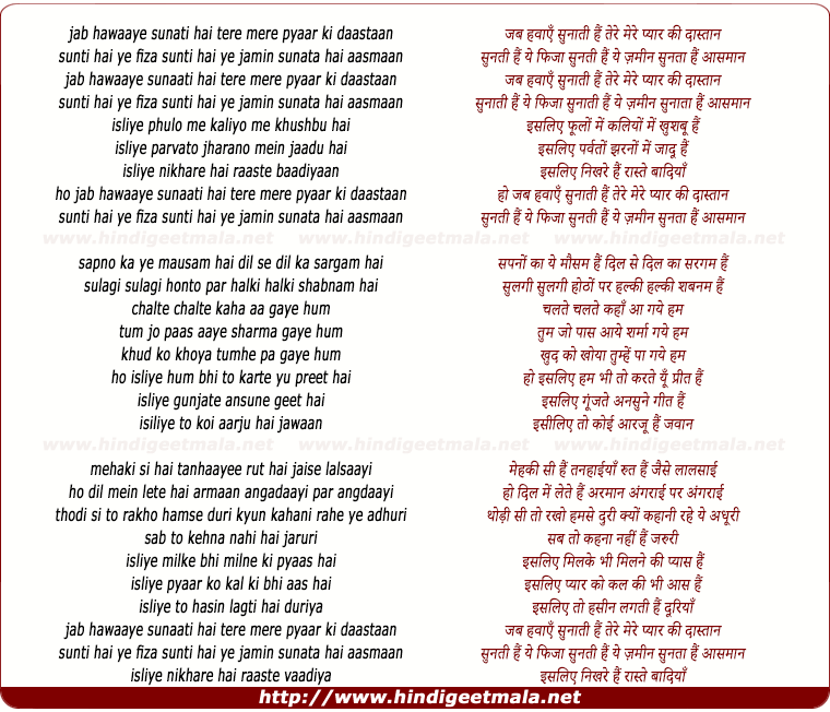 jab hawaaye sunaati hai tere mere pyaar ki daastaan