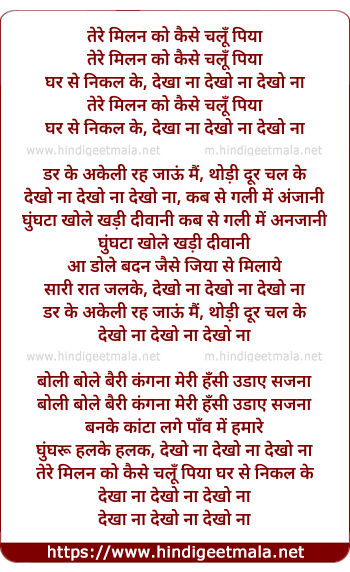 Lyrics of Tere Milan Ko Kaise Chalu Piya - तेरे मिलन को कैसे चलूँ पिया