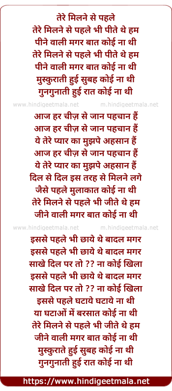 Lyrics of Tere Milne Se Pehle Bhi Pite The Hum - तेरे मिलने से पहले भी पिते थे हम
