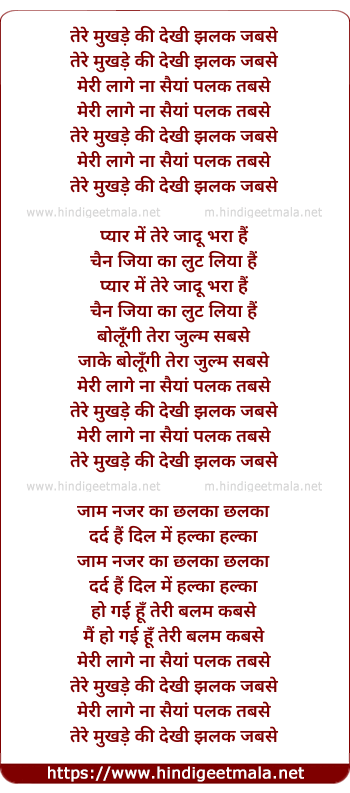 Lyrics of Tere Mukhde Ki Dekhi Jhalak Jabse - तेरे मुखड़े की देखी झलक जबसे