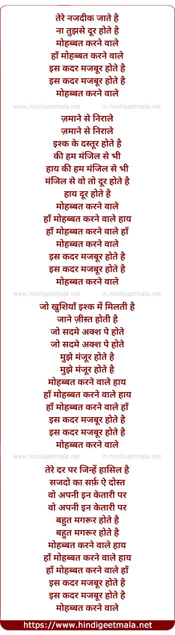 Lyrics of Tere Nazdeek Jate Hai - तेरे नजदीक जाते है