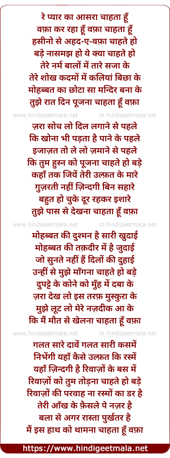 Lyrics of Tere Pyaar Ka Aasra Chahta Hu - तेरे प्यार का आसरा चाहता हूँ
