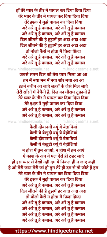 ha tere pyar ke tir ne ghayal kar diya diya diya