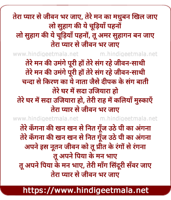 Lyrics of Tere Pyaar Se Jiwan Bhar Jaaye - तेरा प्यार से जीवन भर जाये