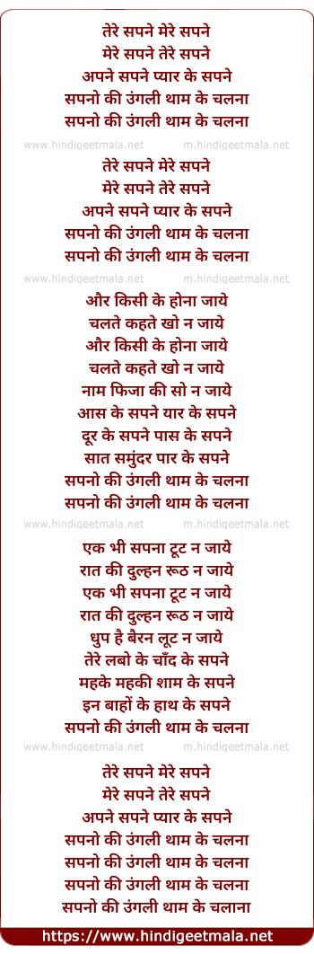 Lyrics of Tere Sapne Mere Sapne