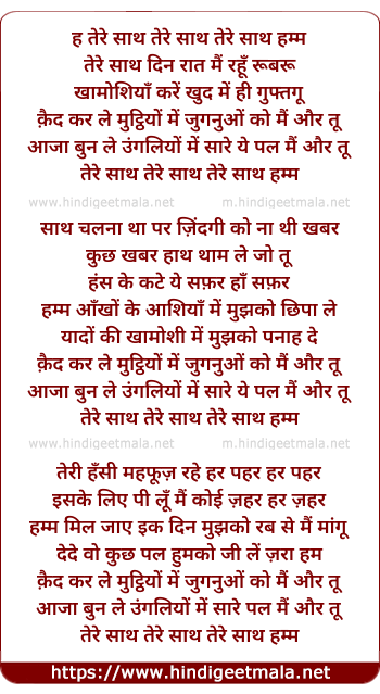 aaja bun le ungliyon mein sare ye pal main aur tu