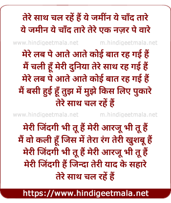 Lyrics of Tere Sath Chal Rahe Hain Yeh Jamin - तेरे साथ चल रहें हैं ये जमींन ये चाँद तारे