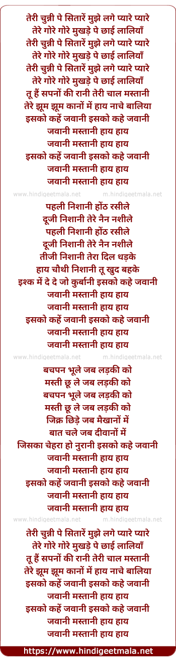 Lyrics of Teri Chunni Pe Sitare - तेरी चुन्नी पे सितारें