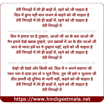 Lyrics of Teri Nigaho Me Tere Hi Baaho Me - तेरी निगाहों में तेरे ही बाहों में