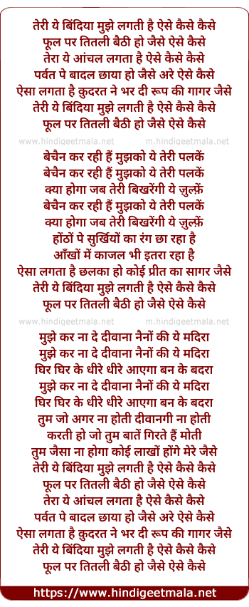 Lyrics of Teree Yeh Bindiya Mujhe Lagatee Hai Aise - तेरी ये बिंदिया मुझे लगती है ऐसे
