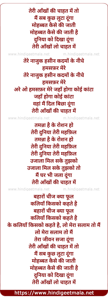 Lyrics of Teri Aankhon Ki Chahat Men To Main Sab Kuchh Luta Dunga - तेरी आँखों की चाहत में तो मैं सब कुछ लुटा दूंगा