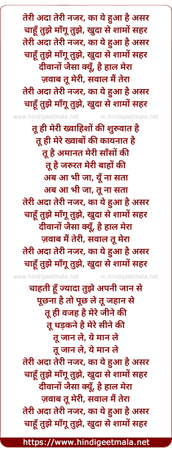 Lyrics of Teri Adaa Teri Nazar - तेरी अदा तेरी नजर