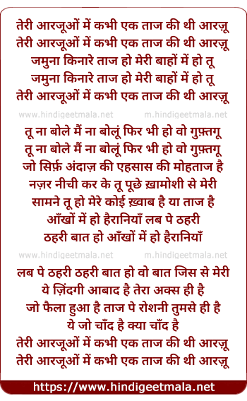 Lyrics of Teri Arzu Mein - तेरी आरजू में