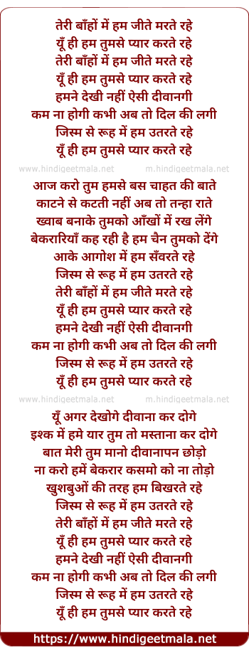Lyrics of Teri Baaho Me - तेरी बाँहों में