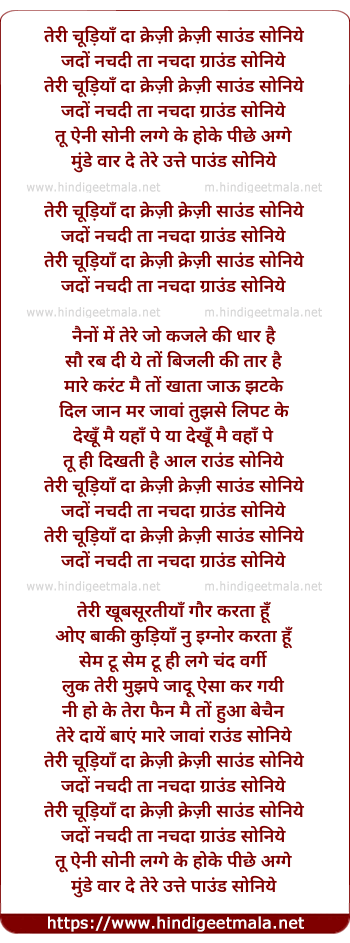 Lyrics of Teri Choodiyan Da Crazy Crazy Sound - तेरी चूड़ियाँ दा क्रेज़ी क्रेज़ी साउंड