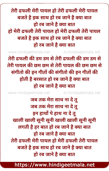 Lyrics of Teri Dafli Meri Paayal - तेरी ढफली मेरी पायल