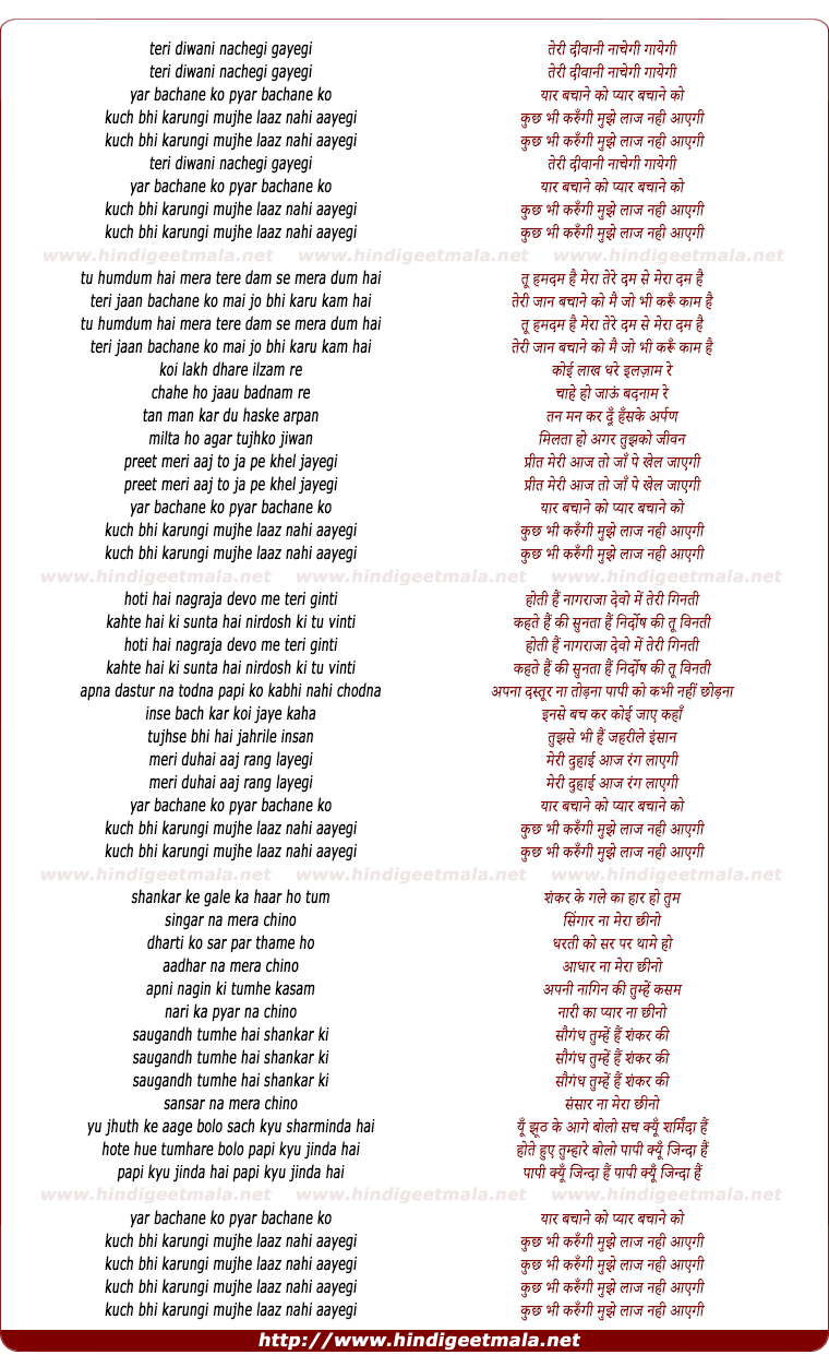 Comments for lyrics of song "Teri Diwani Nachegi Gayegi" |