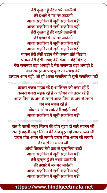 Lyrics of Teri Dulhun Hun Tere Nakhre Uthaungi, Tere Ishare Pe Mar Mar - तेरी दुल्हन हूँ तेरे नखरे उठाऊँगी, तेरे इशारे पे मर मर