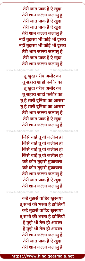 Lyrics of Teri Jaat Paak Hai Aye Khuda - तेरी जात पाक है ऐ खुदा