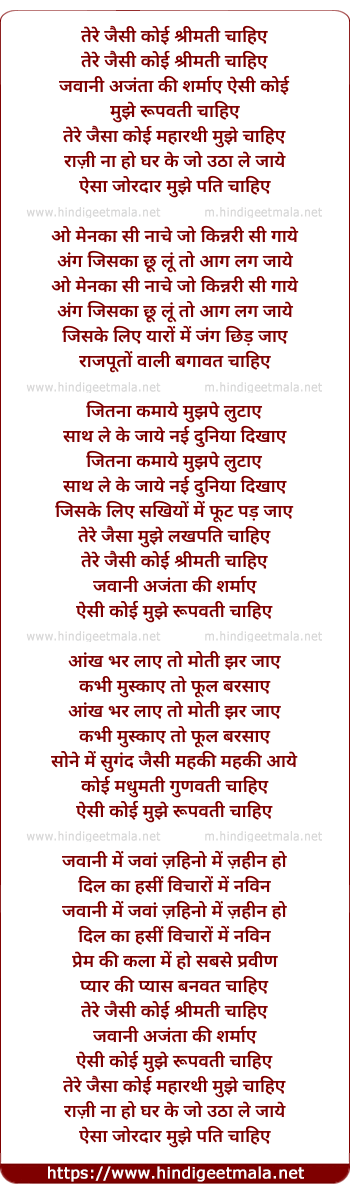 Lyrics of Teri Jaisi Koi Shreemati Chahiye - तेरे जैसी कोई श्रीमती चाहिए