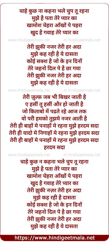 chahe kuch na kahna bhale chup tu rahna