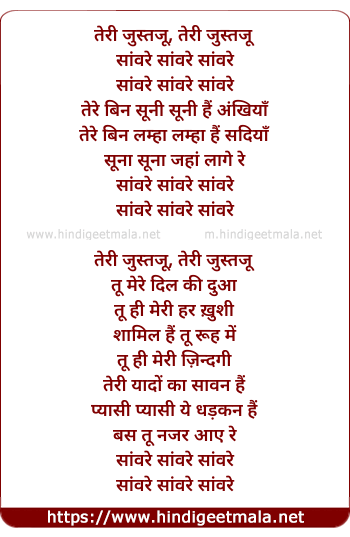 Lyrics of Teri Justajoo (Saware) - तेरी जुस्तजू, तेरी जुस्तजू