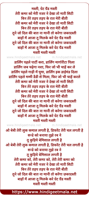 Lyrics of Teri Kamar Ko - तेरी कमर को