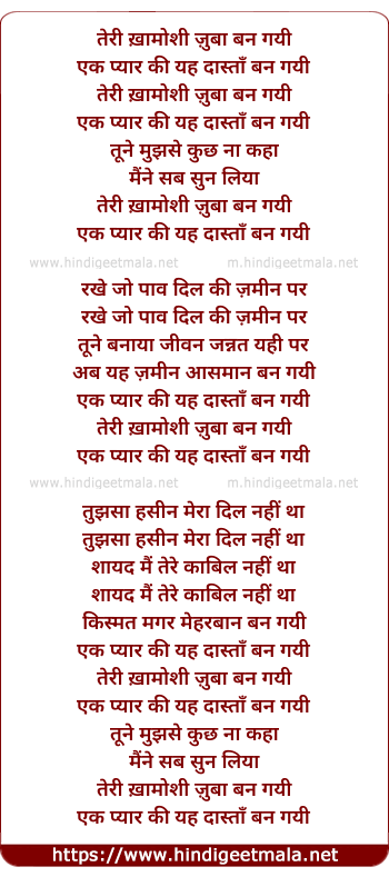 Lyrics of Teri Khamoshi Zubaan Ban Gayi - तेरी ख़ामोशी ज़ुबा बन गयी