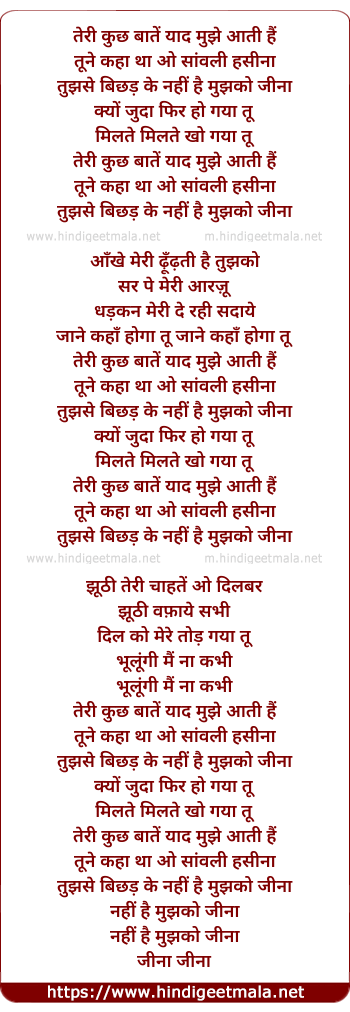 Lyrics of Teri Kuch Baate - तेरी कुछ बातें याद मुझे आती हैं