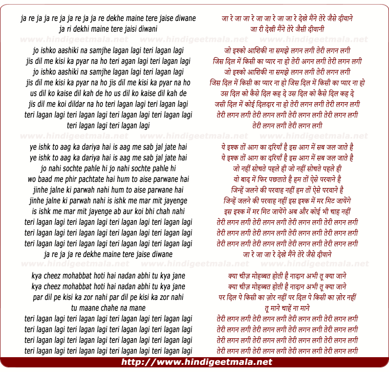 Lyrics of Teri Lagan Lagi - तेरी लगन लगी